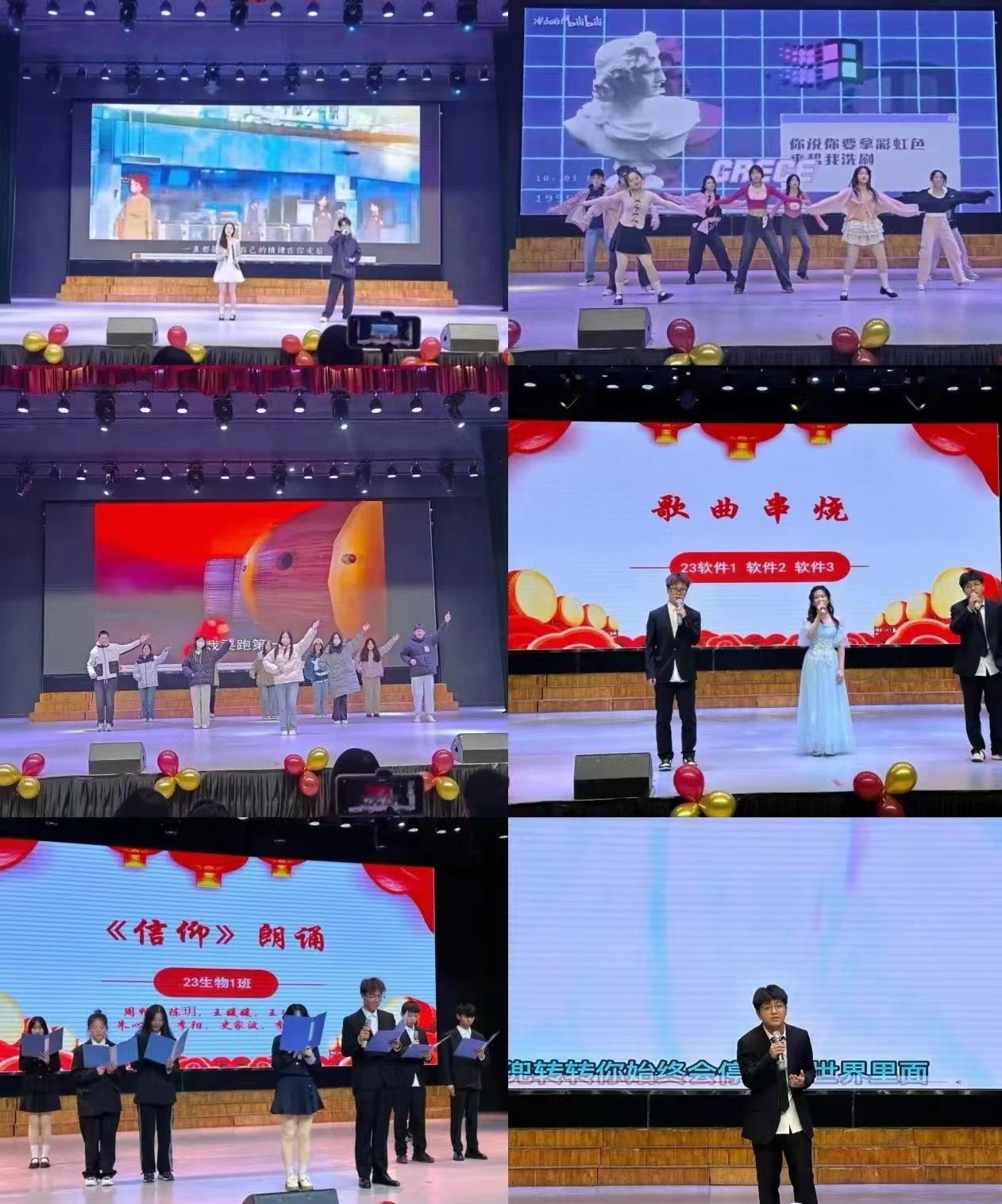 晚会节目精彩纷呈,既有诗朗诵《信仰》,又有当前火遍全网的《科目三》、节奏欢快的《桃花朵朵开》以及舞蹈串烧、歌曲串烧、大合唱等,展现了新时代大学生积极向上、团结活泼、勇于追梦的精神风貌。晚会点燃了信工人干事创业的激情,大家表示,要以坚如磐石的信念,团结协作的作风、追求卓越的精神,为美好未来而努力拼搏,共同书写更加壮丽的事业发展篇章。