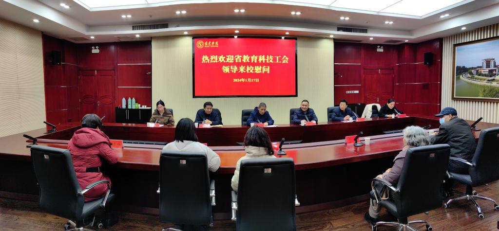 1月17日下午,省教科工会科研部部长吴宝城、高校部部长孙剑来我校开展送温暖活动。副校长施正荣、市教育局工会主席陈子祥等陪同。