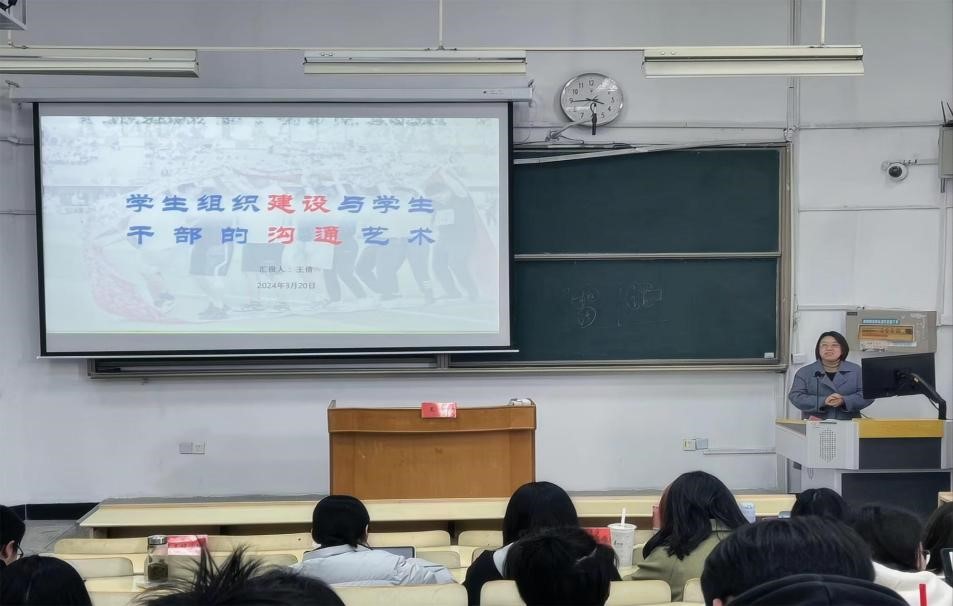 信工院办公室主任曹志成作“新时代学生干部的责任与担当”主题信仰公开课演讲。他以近期社会热点事件——西安交通大学王树国校长卸任为引言,结合亲身经历向各组织学生干部讲述当代大学生应如何承担学生干部的责任。他慷慨激昂的演讲深深打动了在场的每一位学生。外院党委副书记王倩作“团队建设与沟通协作技巧”素养公开课演讲。她向学生干部讲解学生组织建设与干部沟通艺术,介绍团学组织演变历程与制度建设对于18新利luck客服 的关键性作用。