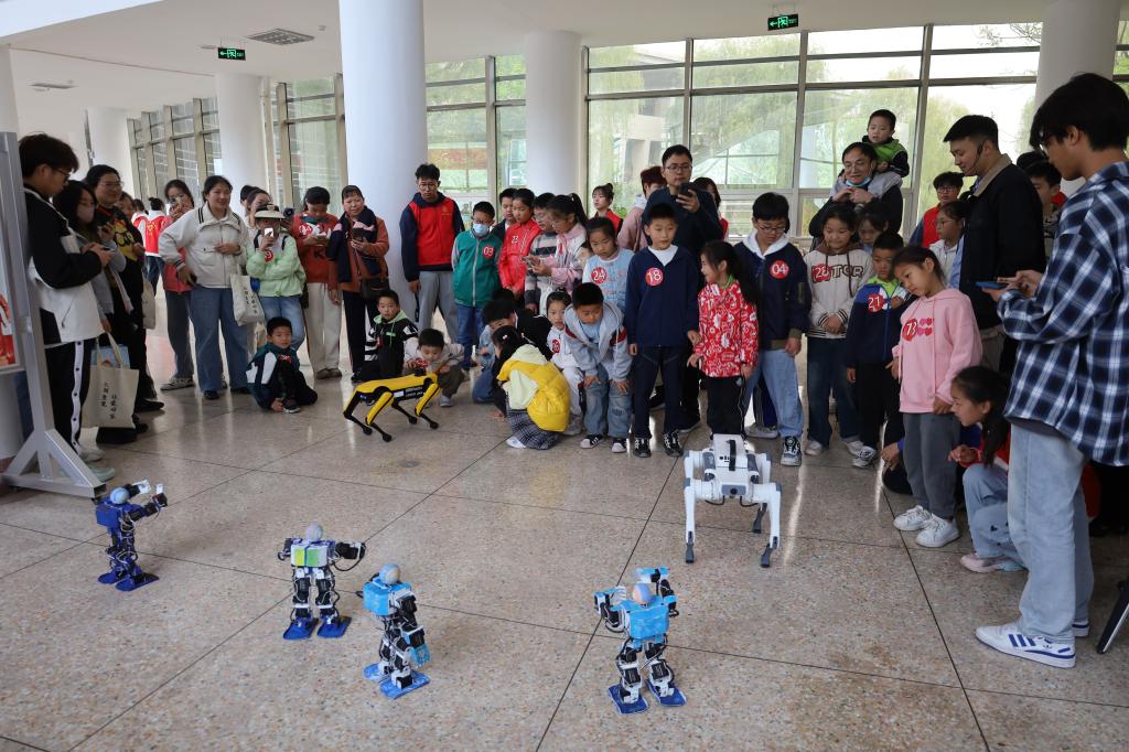 在图书馆,孩子们有序参观馆内的各个阅读区域,优雅的环境、丰富的藏书、浓浓的读书氛围深深吸引着孩子们的目光;在教学楼前,学生志愿者进行了精彩的无人机表演,高难度的飞行动作令孩子们欢呼喝彩,不时喊出“再来一次”;在物理实验室,校大学生科协志愿者带领孩子们参观了科普基地的演示实验区、动手操作区及互动体验区,在聆听讲解和亲自体验中充分感受物理科学的乐趣;在智能制造及机器人科普教育基地,在老师的讲解和示范下,同学们亲身体验着各种各样的科技项目,包括智能小车控制、智能制造学习工场、机器人表演等,孩子们近距离感受智能科技的魅力;在学校田径场,开展以“万物‘筝’春放飞希望”为主题的放风筝比赛。孩子们欢快地奔跑在田径场上,放飞手中五彩斑斓的风筝,天空中百余个风筝自由翱翔,那不仅是孩子们美好梦想的起航,更是他们对未来世界的期望。