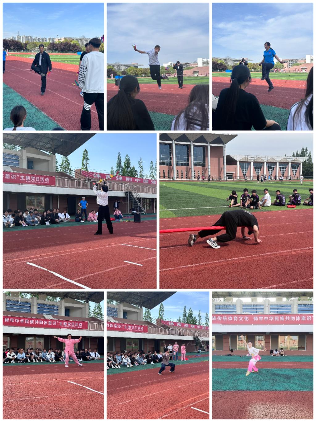 活动中,党员教师以精湛的技艺,为师生们带来了花样跳绳、毽球、钱杆舞、武术、太极拳、押加等一系列民族传统体育项目的展演并简要介绍项目的起源与发展。学生则积极参与体验,感受民族文化的魅力。此次主题党日活动,不仅传承了民族传统体育文化,加强了不同民族之间的交流融合,还增进了师生间的团结与友谊,同时也促进了民族团结和校园文化的繁荣发展。