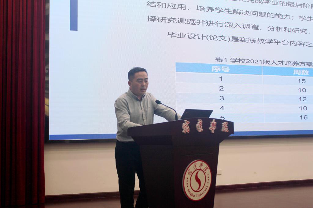 教务处副处长王兴详细解读了国务院教育督导委员会及江苏省教育厅关于毕业论文抽检的相关规定,并对我校2024届的抽检工作进行全面部署。他强调,各学院应组织学生严格按照《江苏省本科毕业论文(设计)抽检评议要素及评价细则》中的“不合格”等级评价细则开展自查自纠,完善和优化论文,提高论文整体质量。他还通报了一些校内外毕业论文抽检不合格和学术不端的案例,重申了学术诚信和论文质量的重要性。