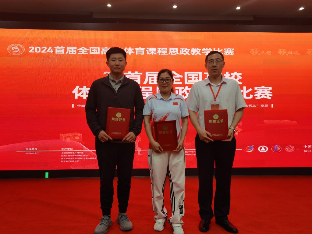 5月31日至6月3日,首届全国高校体育课程思政教学比赛在西安电子科技大学举行。体育学院马大慧和周文芳两位教师获术科组二等奖,刘宇飞获术科组三等奖,我校团体总分排名第35位并获三等奖。