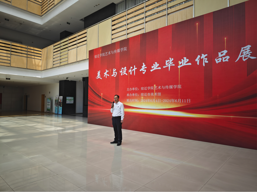 6月4日,艺术与传媒学院2024届美术与设计专业毕业生作品展开幕式在宿迁市美术馆举行。作品展包括国画、油画、装饰画、雕塑及产品设计等各类作品300余件,向观众展示了艺传院美术与设计专业的教育成果和毕业学生的创作风采。本次展出持续一周。