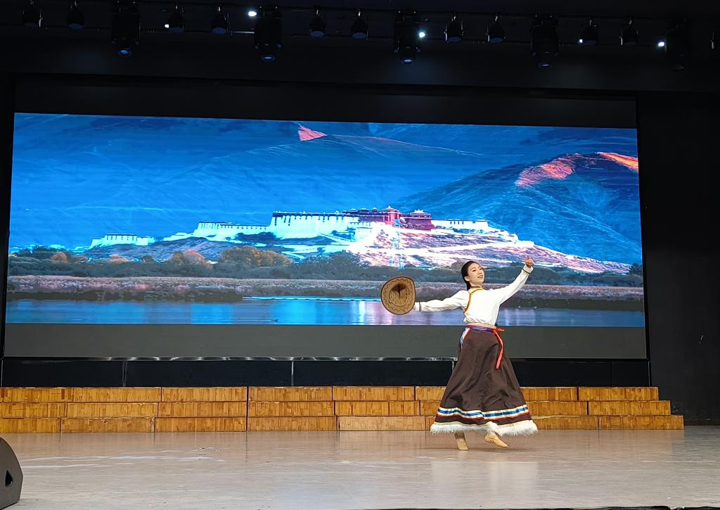 演出中,表演者用民族舞蹈、歌曲表演、器乐合奏、四重唱等多种艺术形式为观众带来一场视听盛宴。藏族独舞《拉岗踏歌》尤为引人注目,舞者身着传统藏族服饰,随着悠扬的音乐翩翩起舞,将塔公草原的辽阔和牧民的欢歌笑语展现得淋漓尽致,令观者仿佛置身于那片美丽的草原之中。此次展演活动主题突出、形式多样、创意新颖,谱写了你中有我、我中有你,血脉相连的生动篇章,进一步铸牢了中华民族共同体意识,深化民族团结进步教育,加强学校各民族师生交往交流交融,推动民族团结之花常开长盛。