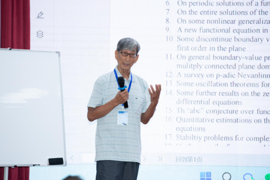 杨重骏教授以《值分布论及在函数方程应用方面的相关问题介绍》为题,主要介绍值分布论研究及其在函数方程(包括分解论及微分方程等)应用方面的问题及猜想。廖良文教授以《Nevanlinna theory and complex differential equations》为题,介绍了Wiman-Valiron在一些特殊微分方程如复域Schwarzian微分方程以及Briot--Bouquet微分方程等方面的应用。扈培础教授以《遁甲论》为题,介绍了数学思想与中国经典文化的关联,特别是数学思想在遁甲论方面的应用。其他与会专家也作相关学术报告。
