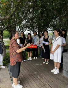 在周恩来纪念馆湖边的海棠花林前,院党委书记嵇会祥介绍了新时代婚育文化的内涵和意蕴,他表示,作为未来的人民教师,同学们在个人生活和对下一代的教育中,要顺应国家和时代的要求,勇敢地追求人生幸福。副院长刘文以“爱情最好的模样,是恩来遇见小超”为题,介绍了周恩来与邓颖超浪漫而深厚的爱情、婚姻故事,他们矢志不渝、生死相随的幸福姻缘,心系家国、以天下为己任的坚定信仰,深深打动了在场的30多位同学。院党委副书记季芳深入分析了周恩来总理成长过程中三位“母亲”的深刻影响,良好的家庭氛围与“母亲们”的言传身教塑造了周恩来总理卓越的人格魅力和家国情怀。