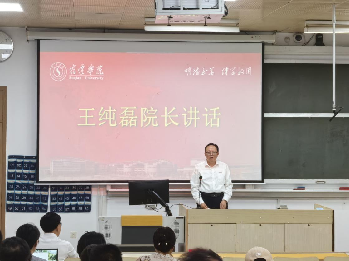 院长王纯磊系统回顾了上半年的主要工作,学院顺利通过师范二级认证,首次跻身软科专业排名榜,学生考研率再创新高,各项工作全新开局。面对学校申硕和创一流的的机遇与挑战,他提出了下半年的工作重点,强调要深化改革,走高质量发展之路;要做好师范认证整改,有效衔接硕点建设;要深化三联三融,抓实十大星火计划。