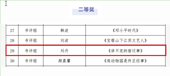 日前,由江苏省图书馆学会指导,江苏省图书馆学会阅读推广委员会主办、南京图书馆学会承办的全省第三届图书馆“阅美善读——馆员荐书”活动获奖名单揭晓,我校图书馆馆员刘丹老师《讲不完的宿迁事》书评从400余份参赛作品中脱颖而出,荣获二等奖。
