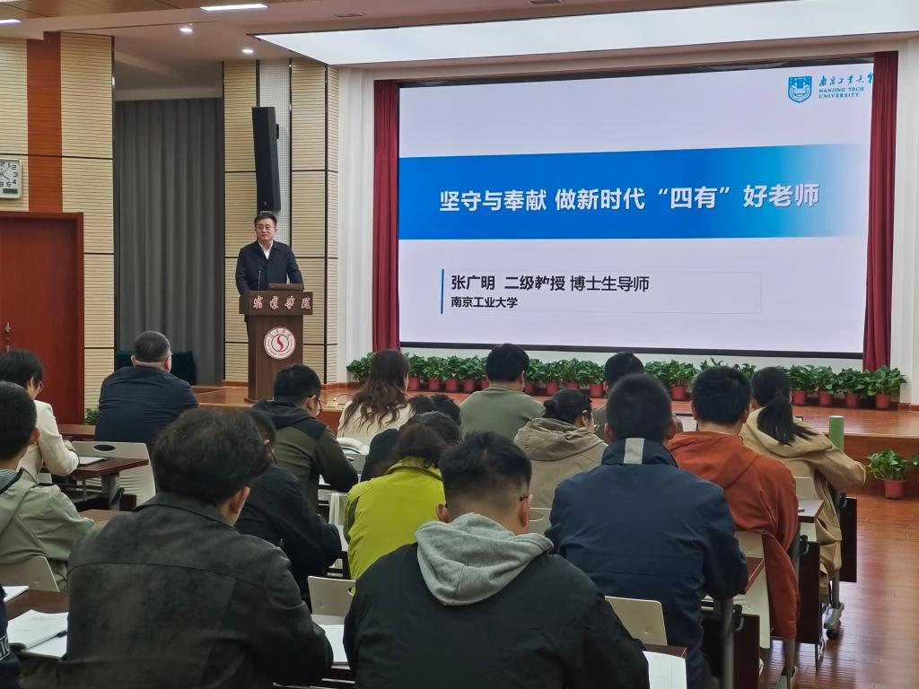 为加强新入职教师的思想政治素质和师德师风建设,10月28日下午,我校在新图书馆学术报告厅举办2024年新入职教师师德师风专题培训。培训邀请国家万人计划教学名师、南京工业大学张广明教授作主题为“坚守与奉献,做新时代‘四有’好老师”讲座。校党委常委、副校长童毛弟主持培训。