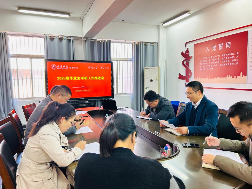 10月24日下午,数理学院召开2025届毕业生考研工作推进会。党委书记嵇会祥、副书记季芳、副院长赵士银及相关专业主任和辅导员参加会议,会议由副院长(主持工作)李金宝主持。