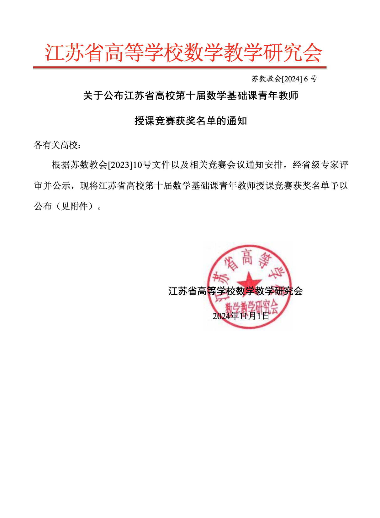(院系)数理学院教师在江苏省高校第十届数学基础课青年教师授课竞赛中创佳绩
