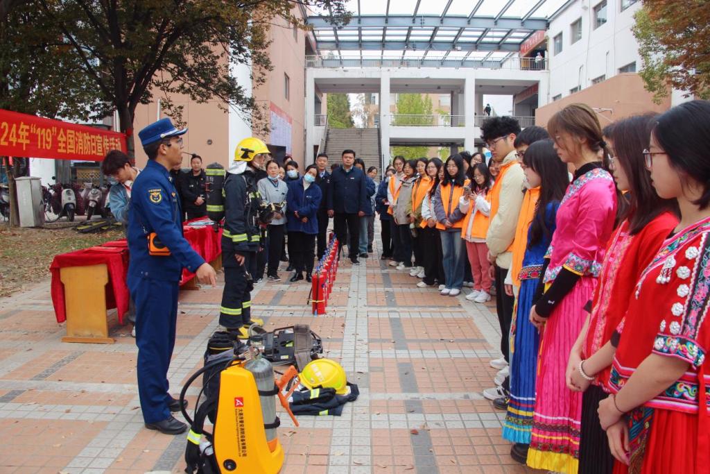 11月9日是第33个全国消防日,为提高师生消防安全意识,增强火灾防范和自救能力,营造良好的校园消防安全环境,我校联合属地消防救援部门开展“119”全国消防日科普宣教活动。