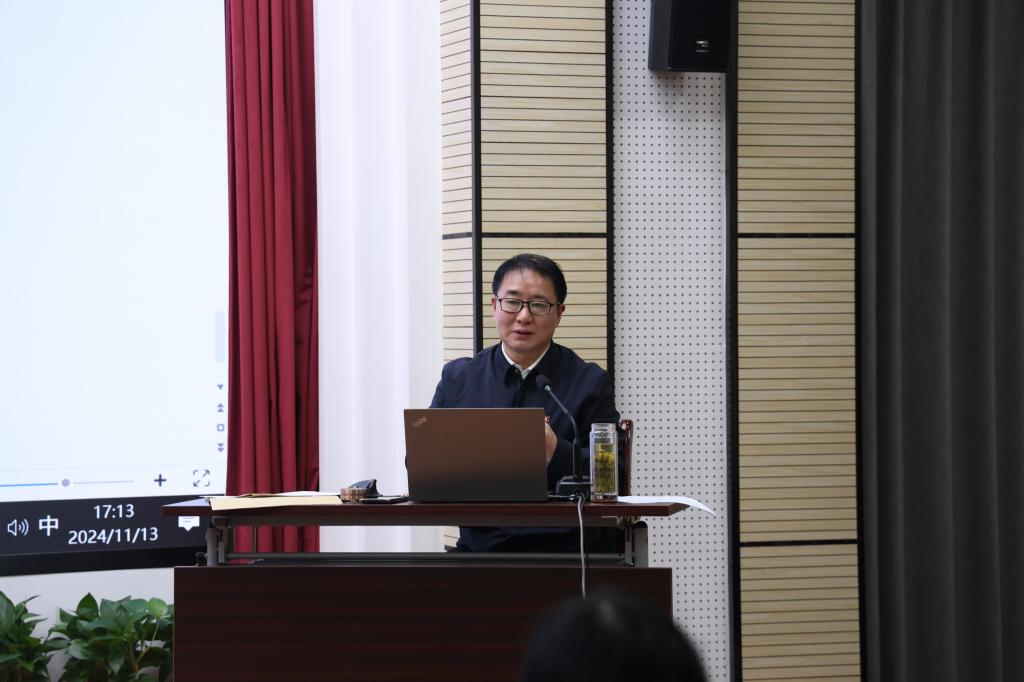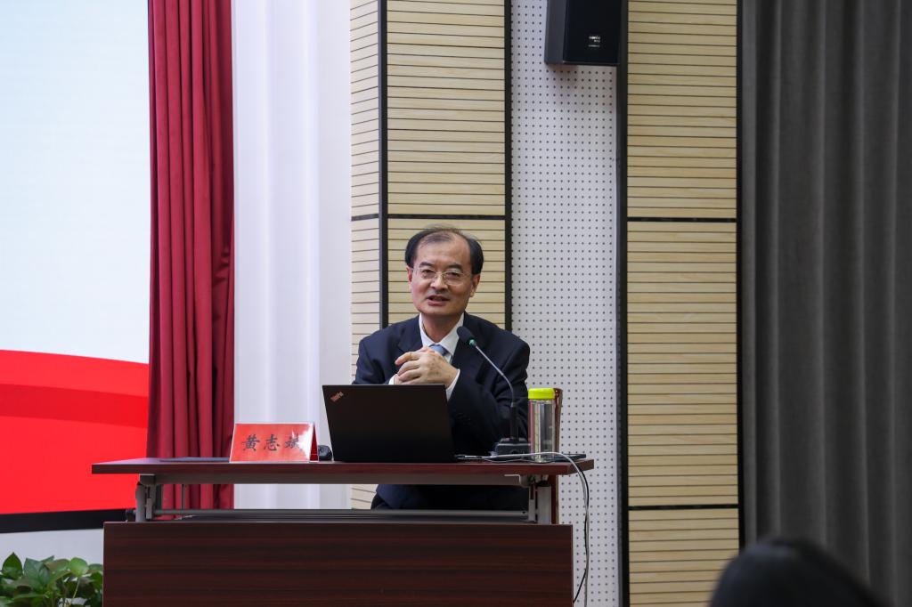 苏州大学党委常委、统战部部长黄志斌以《同心同德谋发展 同心同向创未来——以高质量统战工作助推学校高质量发展的实践与探索》为题作专题讲座。他结合新时代高校统战工作要求解读了部分统一战线理论方针政策和法律法规,并以苏州大学统战工作为例详细介绍了苏州大学统战工作,分享了民主党派组织建设、统战特色品牌打造等方面经验与做法。