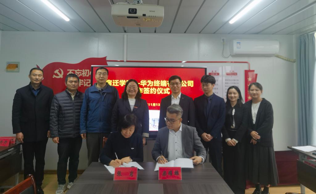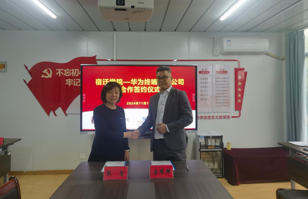 11月13日上午,信息工程学院院长张岩与华为技术有限公司(以下简称“华为”)江苏省服务主管梁耀雄共同签署“全场景智能终端服务18新利luck客服 项目”校企合作协议,内容涵盖师资培训、基地建设、认证培训等。参加签约仪式的企业代表有华为江苏省宿迁区域主管王小满、省服务经理唐宵伟、宿迁区域人力资源经理赵爽、公司省培训经理何丹丹。信工院物联网、人工智能专业教师代表参会,会议由信工院党委书记万娟主持。