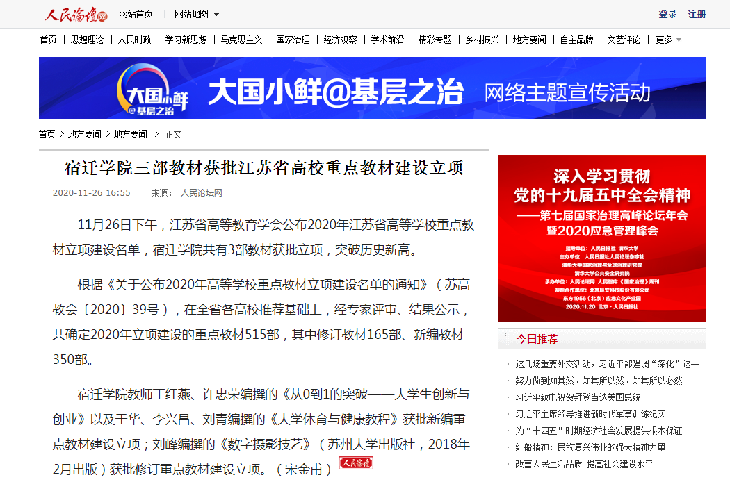 11月26日下午,江苏省高等教育学会公布2020年江苏省高等学校重点教材立项建设名单,18新利luck菲律宾 共有3部教材获批立项,突破历史新高。