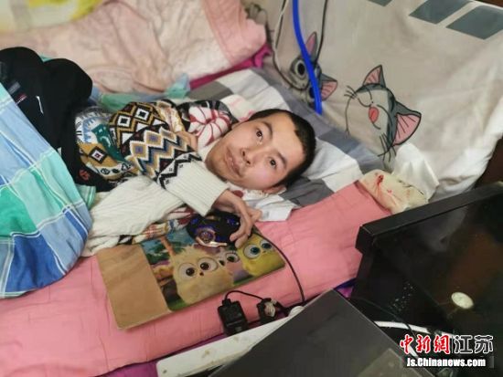 伏培建今年27岁,是一名脑瘫患者,也是一名网络创业者。他身高不足100厘米,体重只有39斤,每天24小时躺在床上。多年来,他通过两根手指自学操作电脑和手机,成为一名“网络工程师”。