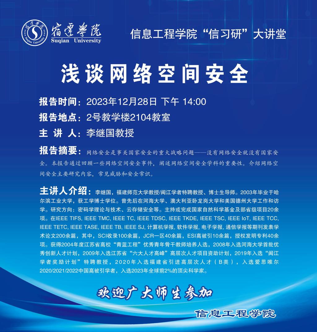 信息工程学院“信习研”大讲堂:浅谈网络空间安全