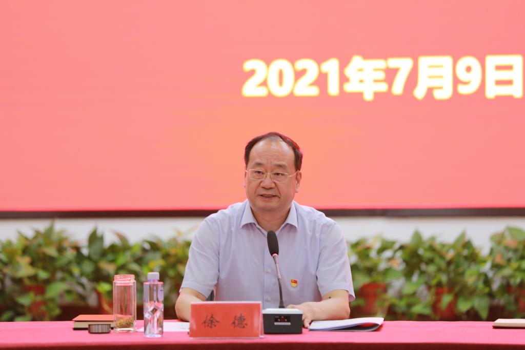 徐德书记指出,习近平总书记“七一”讲话,立足中国共产党百年华诞的重大时刻和“两个一百年”历史交汇的关键节点,回望光辉历史、擘画光明未来,是一篇马克思主义纲领性文献,是新时代中国共产党人不忘初心、牢记使命的政治宣言,是我们党团结带领人民以史为鉴、开创未来的行动指南。当前,全校上下要按照中央和省委、省委教育工委的统一部署安排,把学习“七一”讲话精神作为下半年学校党史学习教育的主线,确保学深悟透、融会贯通。大家要在深化学习中梳理出一些具有重大理论价值和实践价值的重要命题,开展深入的专题研究,努力推出有分量的研究成果。
