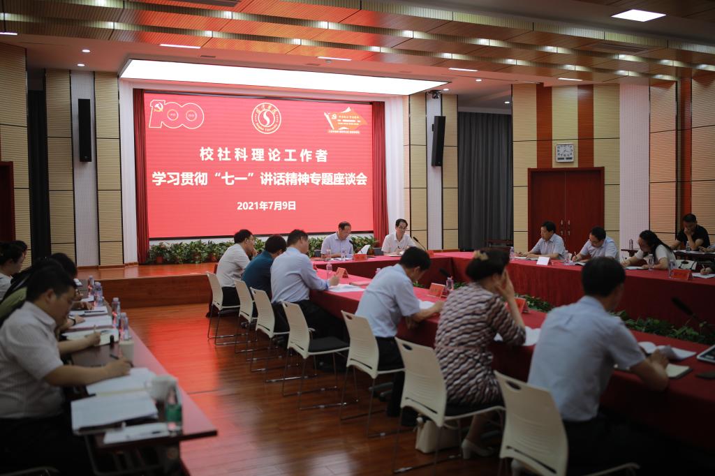 7月9日下午,为深入学习贯彻习近平总书记在庆祝中国共产党成立100周年大会上的重要讲话精神,引导激励全校师生员工牢记初心使命、开创美好未来,加快建设高水平有特色应用技术大学,我校召开校社科理论工作者学习贯彻“七一”讲话精神专题座谈会。校党委书记徐德出席会议并讲话,校党委常委、宣传部部长孙以泽主持会议。