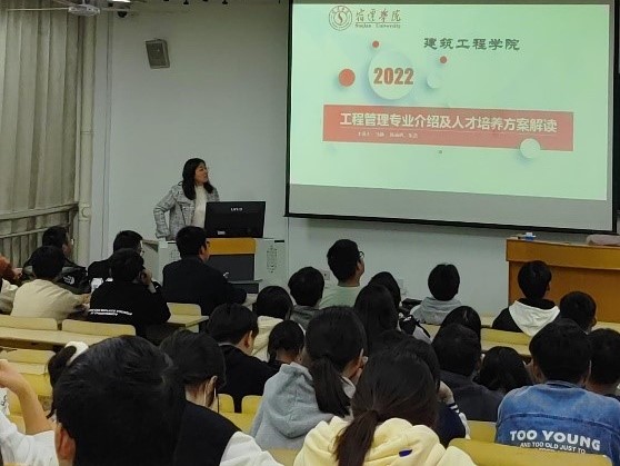 工程管理专业马静老师从专业的历史、发展变革、现状等方面进行了专业介绍,使新生对学校和专业有了初步的认识;从专业的设置情况、主要课程、专业特色、发展现状、就业前景等对学生进行了学业指导,以帮助新生尽快了解专业现状,尽早树立学习目标,做好职业规划。此外,马老师对本专业学生近几年参加全国高校BIM毕业设计创新大赛的过程和取得的成绩进行了介绍,并鼓励学生在校期间积极参与学科竞赛等课外科技活动,以提高个人的学科素养和实践能力,为后续发展打下良好基础
