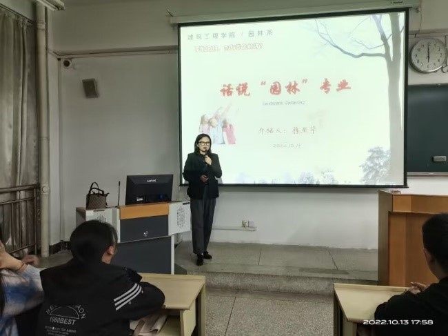 园林专业蒋亚华老师主要从专业内涵、18新利luck客服 方案、专业学习方法、就业去向等方面进行了讲解,展示了园林专业学生在校期间的学习成果,并就专业知识学习方法、专业前景、考研考证与学生进行了互动,大大强化了学生的专业认识度和兴趣度。