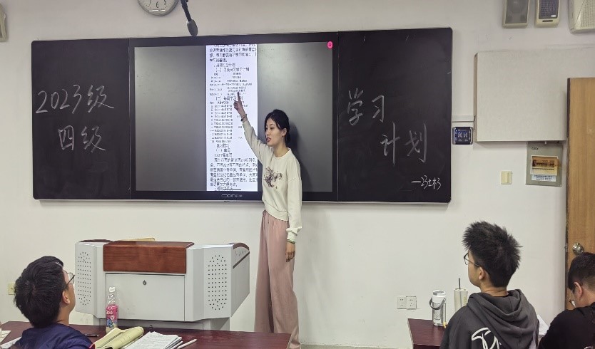 主题班会由2023级各班学习班助向学生介绍大学第一学期英语四级学习计划与内容,主要涵盖英语四级建立学习目标、介绍考试内容、持续鼓励和帮扶、每周模拟考试、分享模块学习技巧等工作,教育引导学生在学习过程中不断积累,及时回顾温习,把真题搞懂吃透,形成自己的思路和方法,总结好自己熟练运用的作文模板,分模块、分时间、分技巧来做整套试卷,抓大放小。