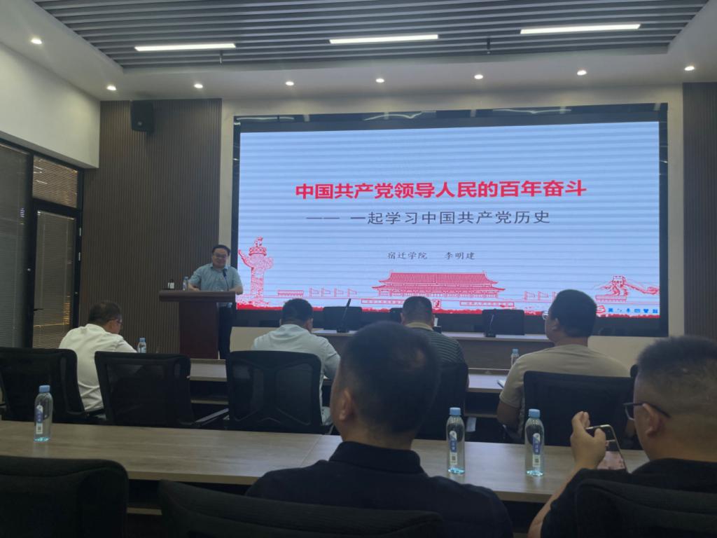 建筑工程学院教师第一党支部和宿城区绿色建材产业链联合党委的党员同志们齐聚绿色产业链综合服务中心,听取由18新利luck菲律宾 党委宣传部李明健部长讲述题为《中国共产党领导人民的百年奋斗——一起学习中国共产党历史》的主题党课。