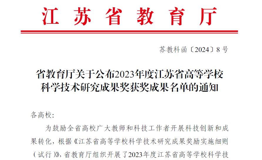 日前,江苏省教育厅公布2023年度江苏省高等学校科学技术研究成果奖评审结果。我校作为第一单位与中建三局第一建设工程有限责任公司联合申报的《深基坑监测预警与数据处理方法及施工关键技术》项目喜获2023年度江苏省高等学校科学技术研究成果奖三等奖。