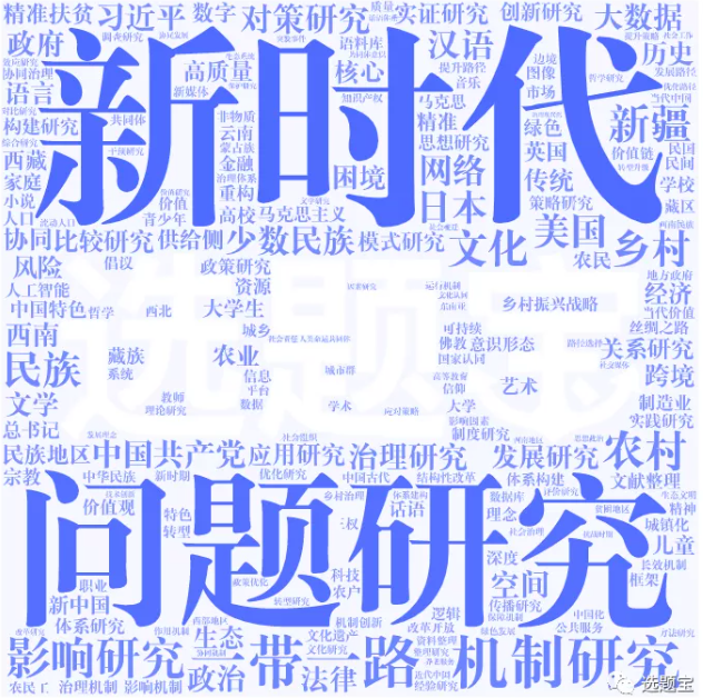 国家社科的立项高频词更多集中在“新时代”“一带一路”这样与宏观政策相关的方向。
