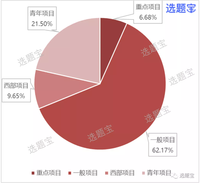 2016-2020年国家社科基金立项中,最多的是“一般项目”(62.17%),其次是“青年项目”(21.5%)。