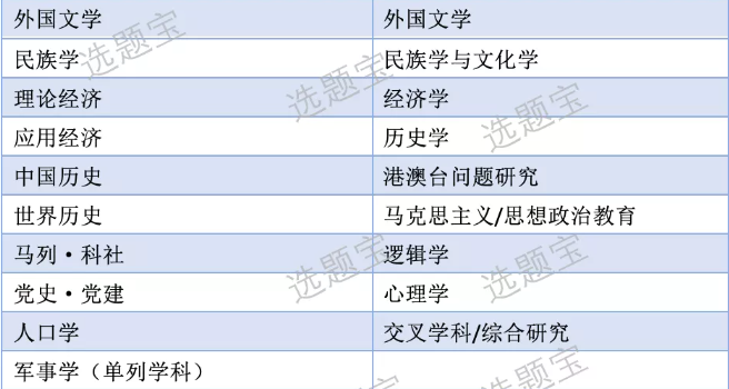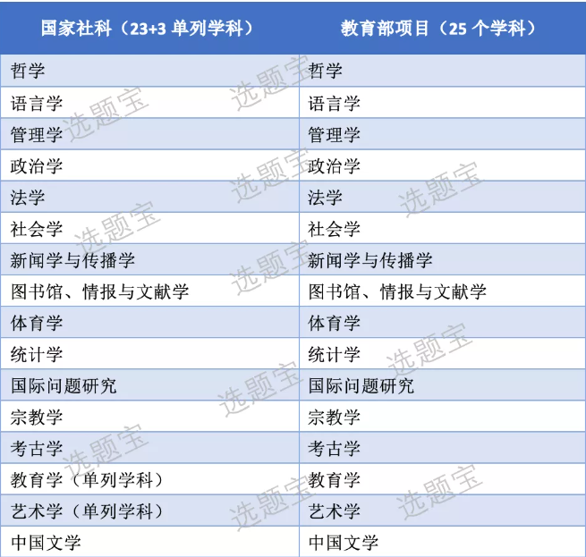 国家社科和教育部项目在申报学科上大体相同,差异较大的学科在于教育部项目设立了“心理学”和“交叉学科/综合研究”,这是国家社科基金所没有的。