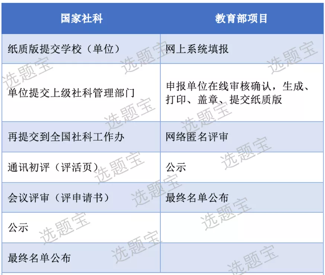 国家社科基金实行3级申报制度,限项申报,每个省、每个学校有申报限额。教育部项目不限项,但个别学校为了提高本校命中率也会在校内筛选一轮。申报国家社科基金项目,负责人要填写申请书和活页两份文件,申报教育部项目只需要填写一份申请书,同时在网上提交即可。