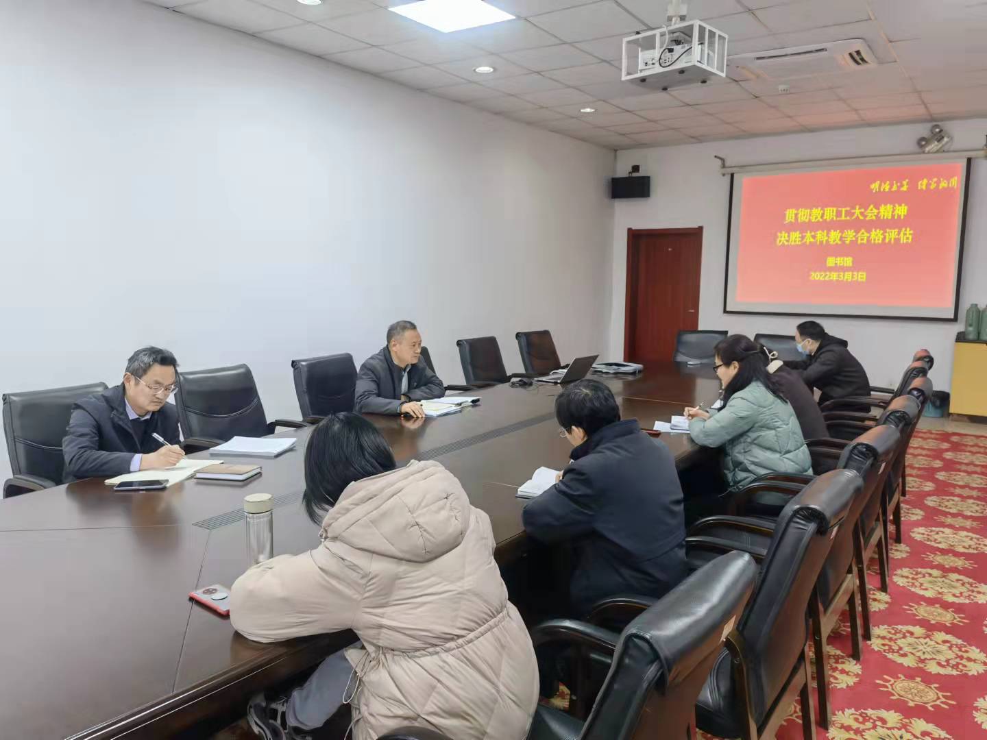3月3日上午,图书馆在二楼会议室召开本科教学合格评估专项推进会,会议由李明善馆长主持,图书馆本科教学合格评估领导小组及相关人员参加了会议。