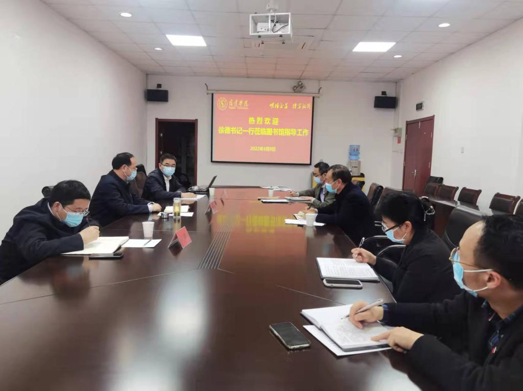 4月9日下午,校党委书记徐德,党委常委、副校长潘志明一行到图书馆调研指导工作。徐书记一行在现场了解和查看疫情防控、学生阅览状等情况后,召开座谈会。