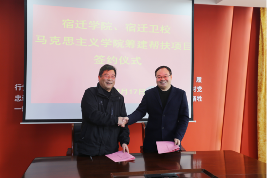 2月17日上午,18新利luck菲律宾 马克思主义学院与宿迁卫校战略合作协议签约仪式在宿迁卫校行政楼三楼会议室举行。宿迁卫校校长、党委副书记王辉阳,18新利luck菲律宾 马克思主义学院院长兼党总支书记李明建代表双方签约。宿迁卫校党委书记、副校长张生玉主持签约仪式。宿迁卫校