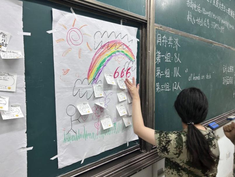 我的祝福之共创未来。新生们在便利贴上写下自己对于未来大学生活的美好祝福与愿景。培训师们随机选择进行分享,解答疑惑,分享喜悦,同时也祝愿新生们能更好地适应美好的大学生活,不断学习进步。