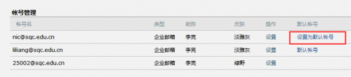 3.账号管理模块中可以看到与账号相关联的别名管理账号,选择“设置为默认账号”,点击下方“保存更改”。在左上方即可出现设置的默认账号。