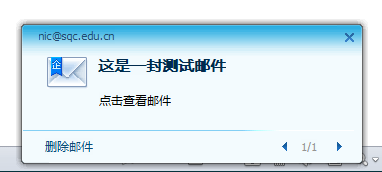 QQ绑定成功后,收到邮件时会有相应的QQ提示: