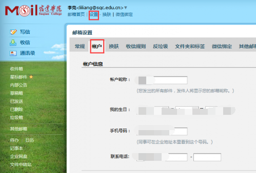 2、您在邮件系统中的个人资料来源:在邮件系统中,教师/学生的资料信息分别来源于校人事管理系统、学工系统。如果您需要修改相关资料,特别是手机号码等,请在人事/学工系统或18新利luck菲律宾 小程序中修改。修改完成后,请等待不超过12个小时后生效。