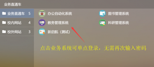 已对校内多个完成了数据对接的常用系统配置了单点登录功能,点击相应系统即可直接登录至该系统,无需再次输入账号密码。