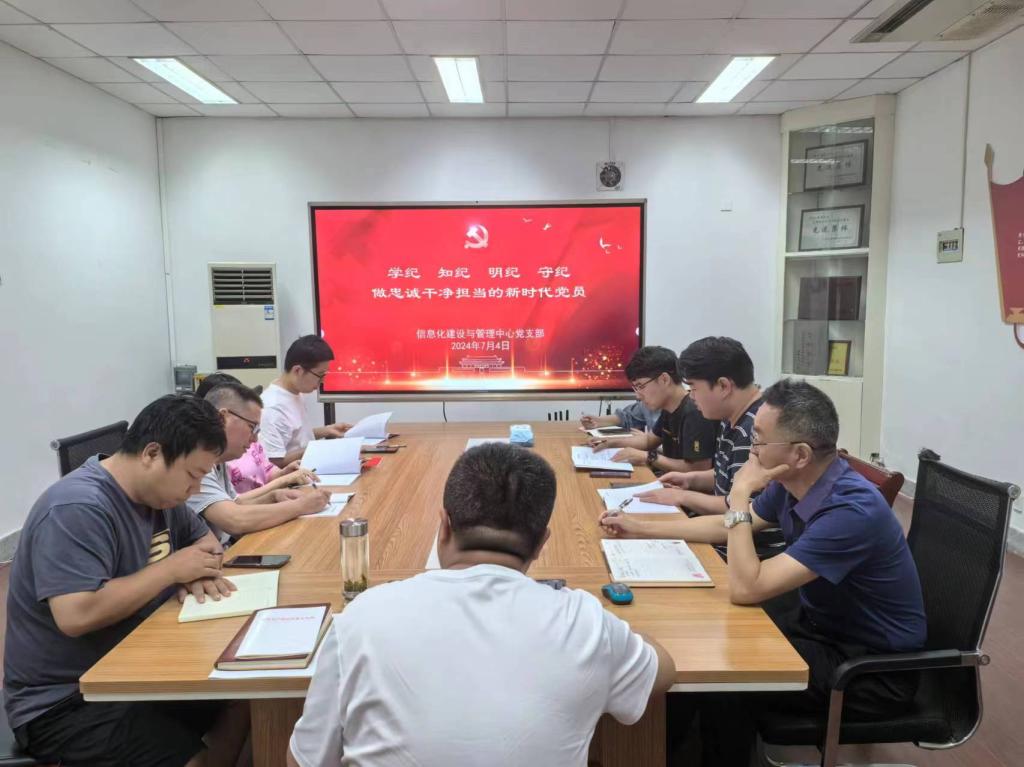 2024年7月4日上午九点,信息化建设与管理中心党支部开展纪律党课活动。支部全体党员参加,教辅总支书记韩宏军参加此次党课,信息中心党支部书记李亮主持活动。