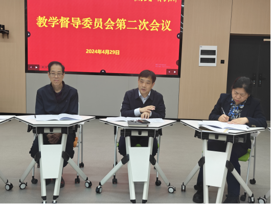 4月29日下午,我校在1-四阶(智慧教室)召开2023-2024学年第二学期教学督导委员会第二次会议。校教学督导委员会、质评处全体成员均到场参会。会议由校教学督导委员会副主任委员孙以泽主持。