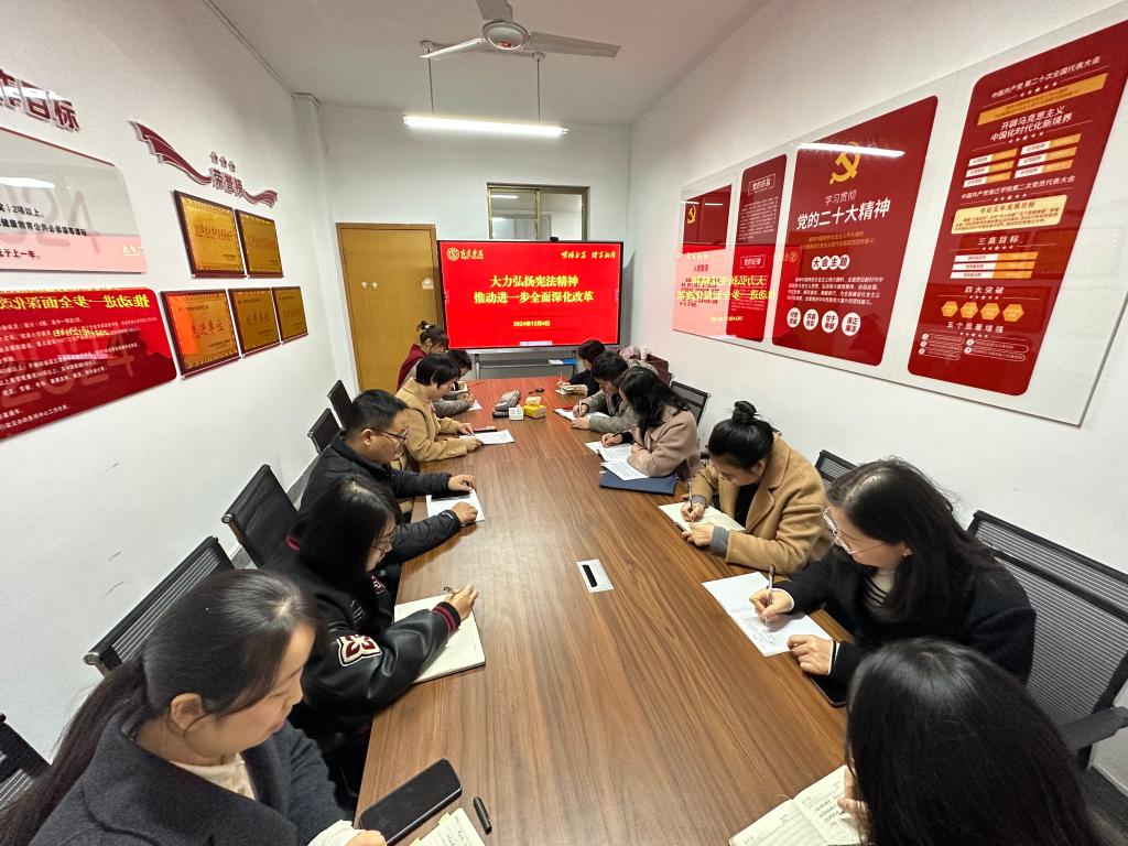 学习活动中,人事处长王菊领学了《中华人民共和国宪法》,首先阐述了国家宪法日的由来和设立的意义,然后从宪法的概念、修订历程以及修订主要内容、核心要义和精神实质等方面对宪法进行了全面解读。