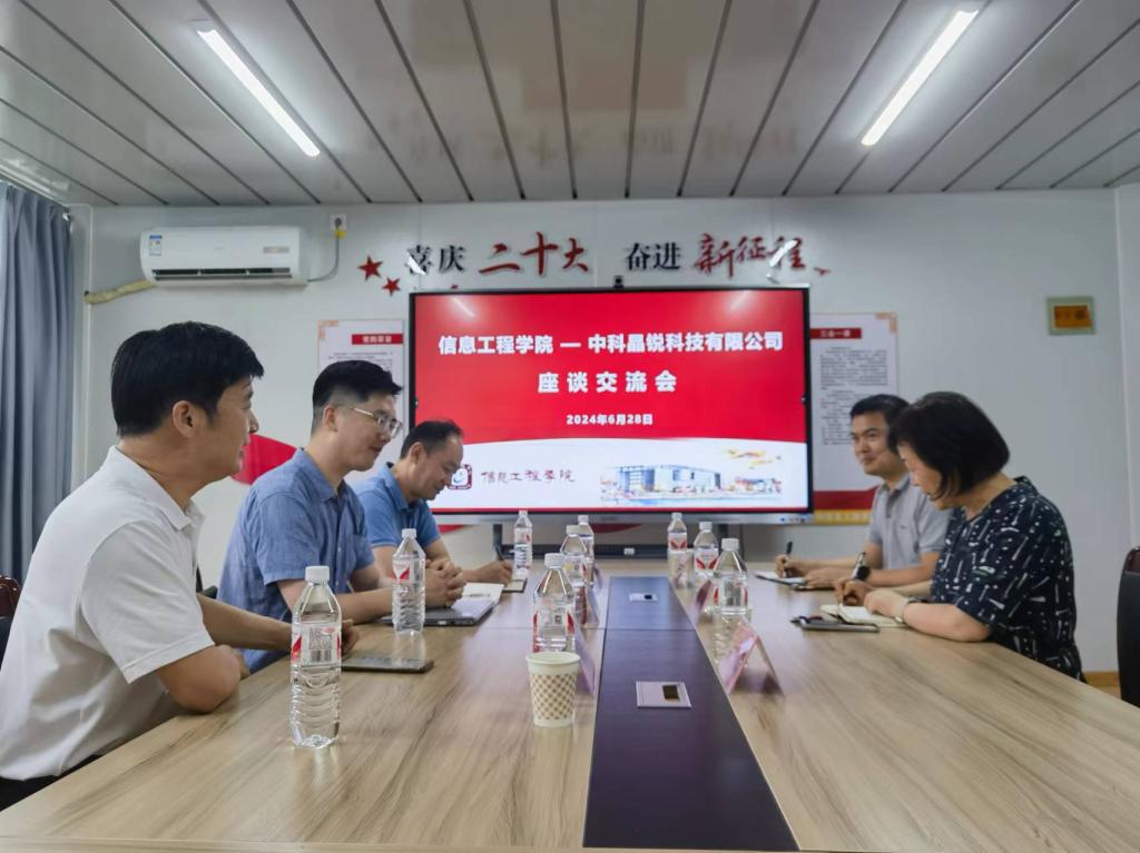 6月28日,中科晶锐(苏州)科技有限公司总经理史少校一行来校与信息工程学院洽谈合作。信工院院长张岩等参加座谈。