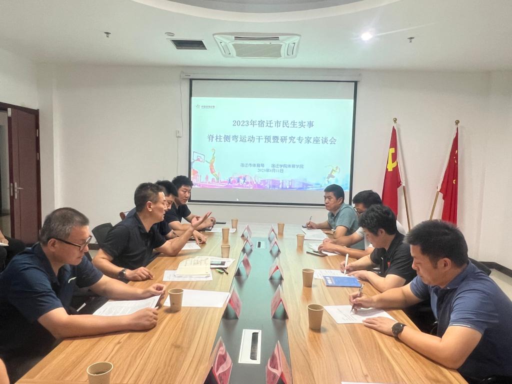 8月11日上午,体育学院于华副院长(主持工作)一行7人赴宿迁市体育局体测中心(体科所)参加2023年宿迁市民生实事脊柱侧弯运动干预专家座谈会。