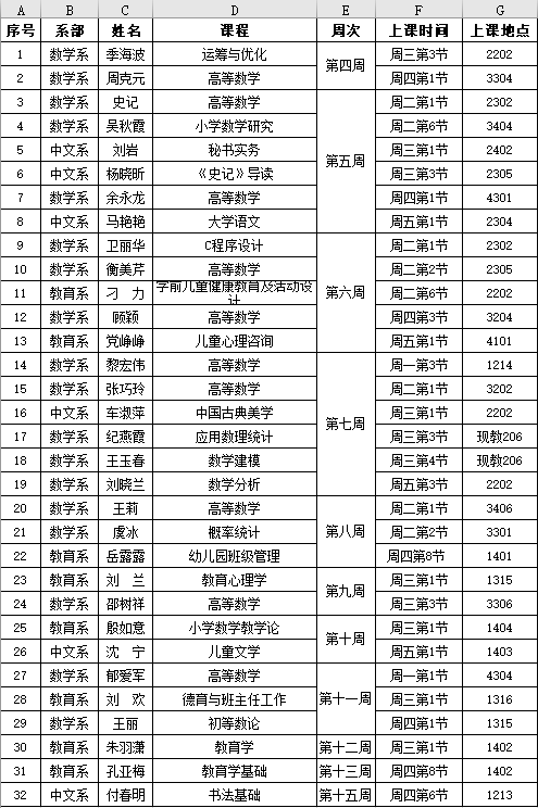 (3)教育系、中文系、数学系需要对本系所上公开课开展专题教研活动,组织本系所有听课教师对公开课集体研讨、分析优缺点,帮助青年教师提高教学质量,讲授“好课”,逐步打造“金课”。
