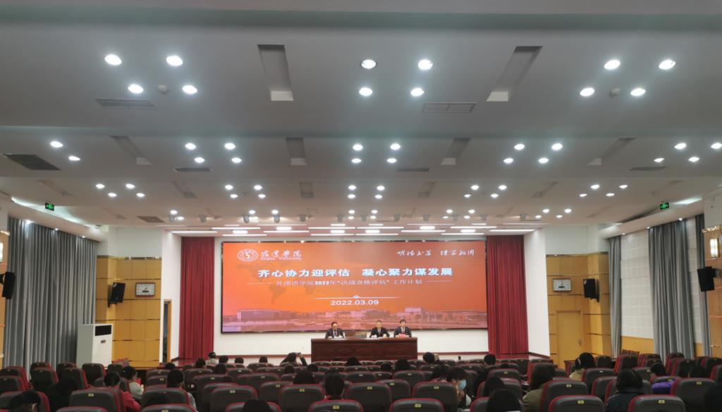 3月9日下午,外国语学院召开决胜合格评估动员暨目标责任签状大会。外国语学院党政领导班子和全体教职工参加会议。会议由外国语学院副院长沈刚主持。