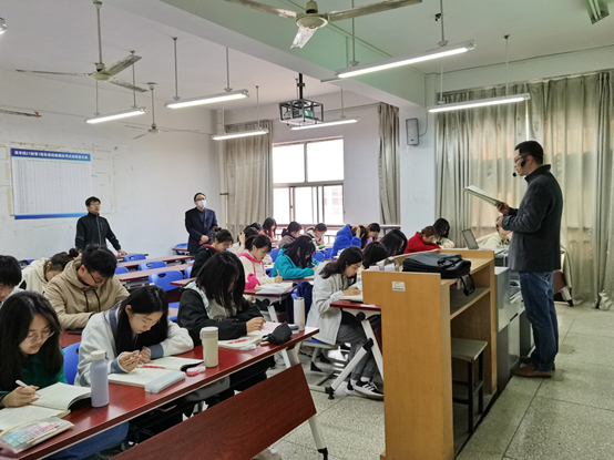 3月9日上午8:00-8:45是我校线下复课第一节课,第一节课外院共有涉及2号楼、3号楼、4号楼、语音室等英语专业、日语专业、大学英语等38位教师的课程。为切实了解线下授课准备情况,授课实况,外国语学院领导班子、督导等一行6人在7:40走进教室进行“五大件材料”+同步线上授课准备情况检查,并于8:00逐一巡课并随机听课。总体线下线上“双同步”授课情况良好,也发现涉及语音室有4个教室由于网络问题,无法线下线上“双同步”授课。