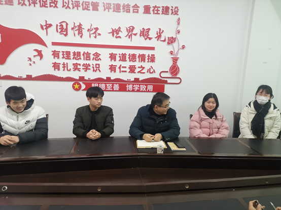 潘志明副校长还与学院20级班级代表、宿舍代表、学生代表进行了亲切交流。他鼓励同学们尽早做好职业生涯规划,刻苦学习、成人成才;寒假期间自觉遵守相关疫情管理规定,注意交通安全;积极参加社会实践,提高独立自主解决问题的能力。